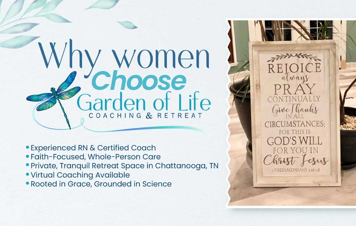 At Garden of Life Coaching & Retreat, we believe that true wellness is more than just physical health; it is finding balance in body, mind, and spirit. Our mission is to provide compassionate, Christ-centered care that helps women thrive through every season of life.